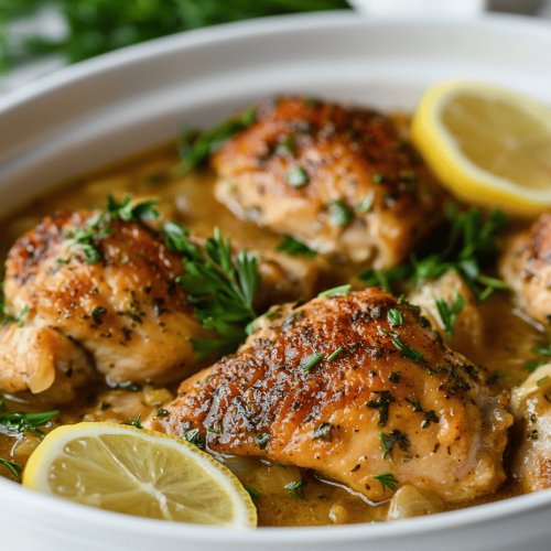 Serve the chicken fricassee hot, spooning the creamy sauce over the tender pieces, with your favorite sides.