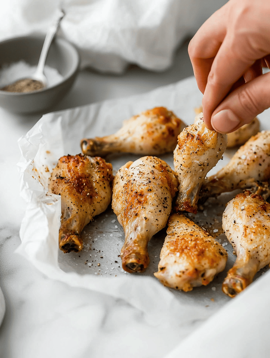 Pat the chicken pieces dry with paper towels, then season generously with salt and pepper.