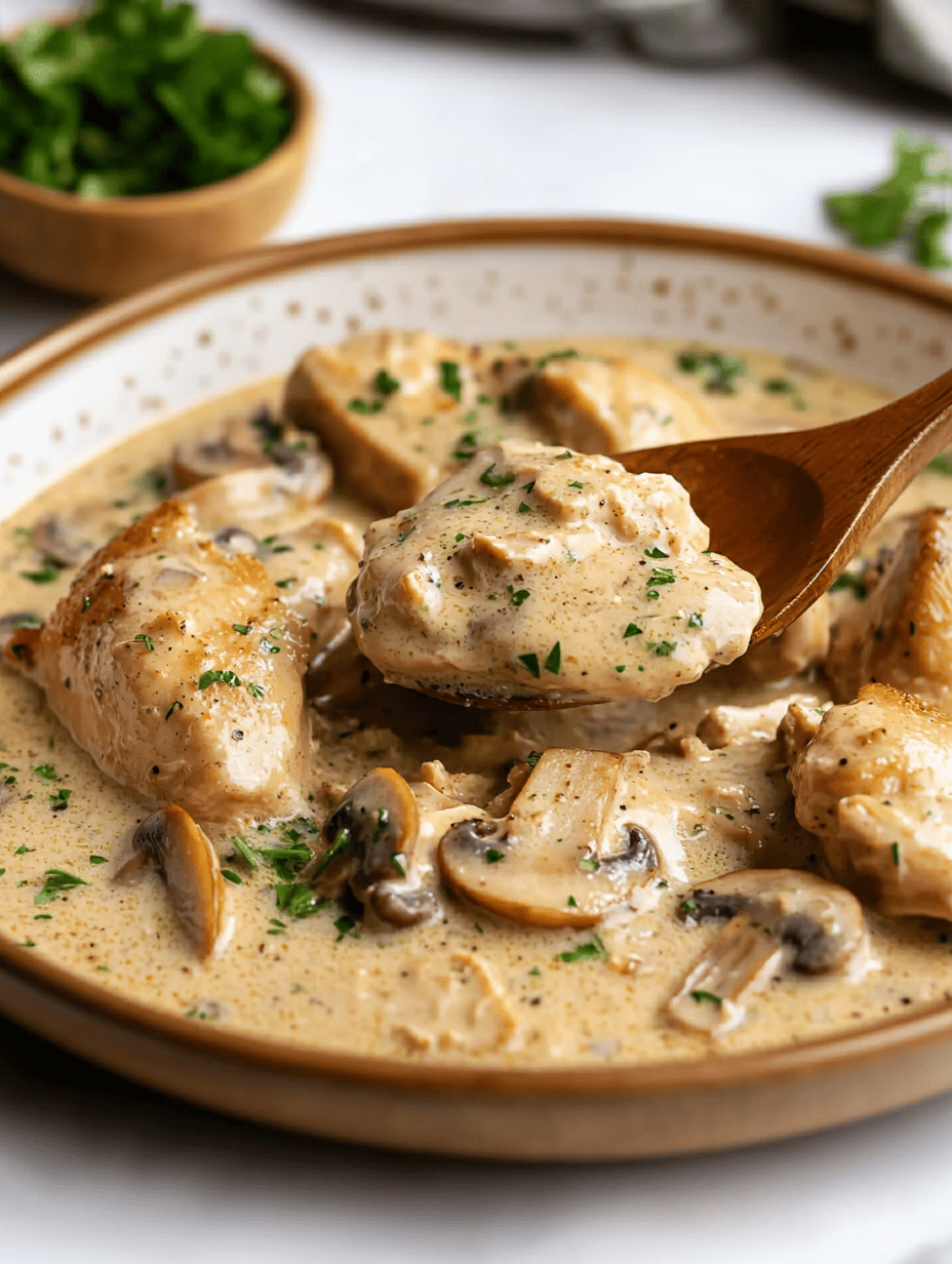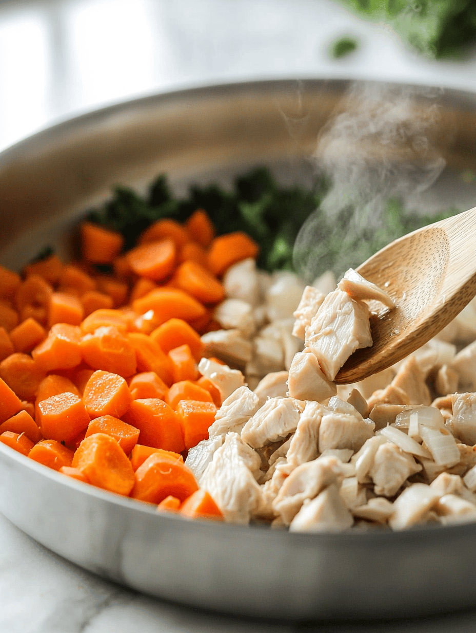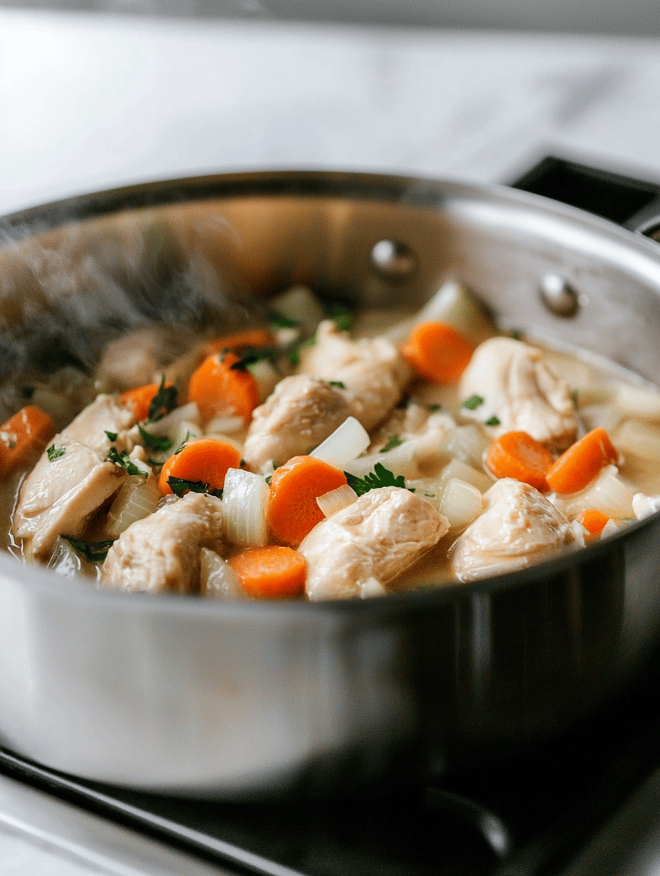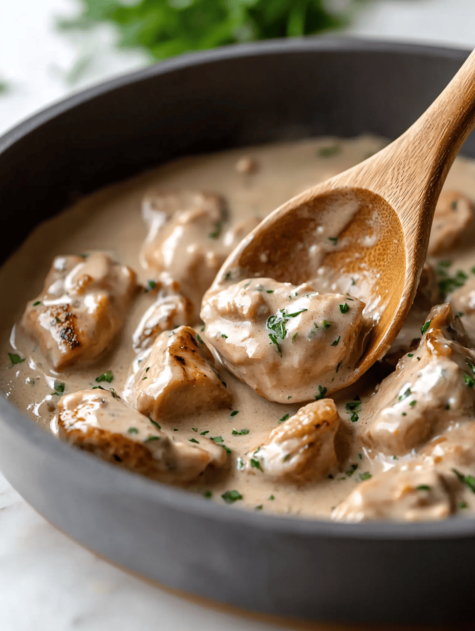 Gently stir the chicken to coat with the rich sauce, then turn off the heat and let it rest for a minute.