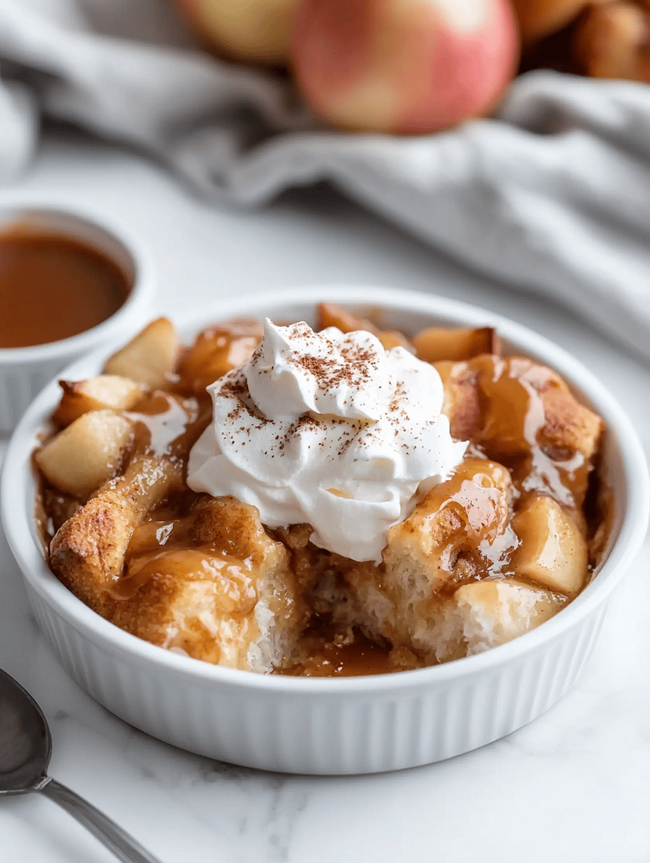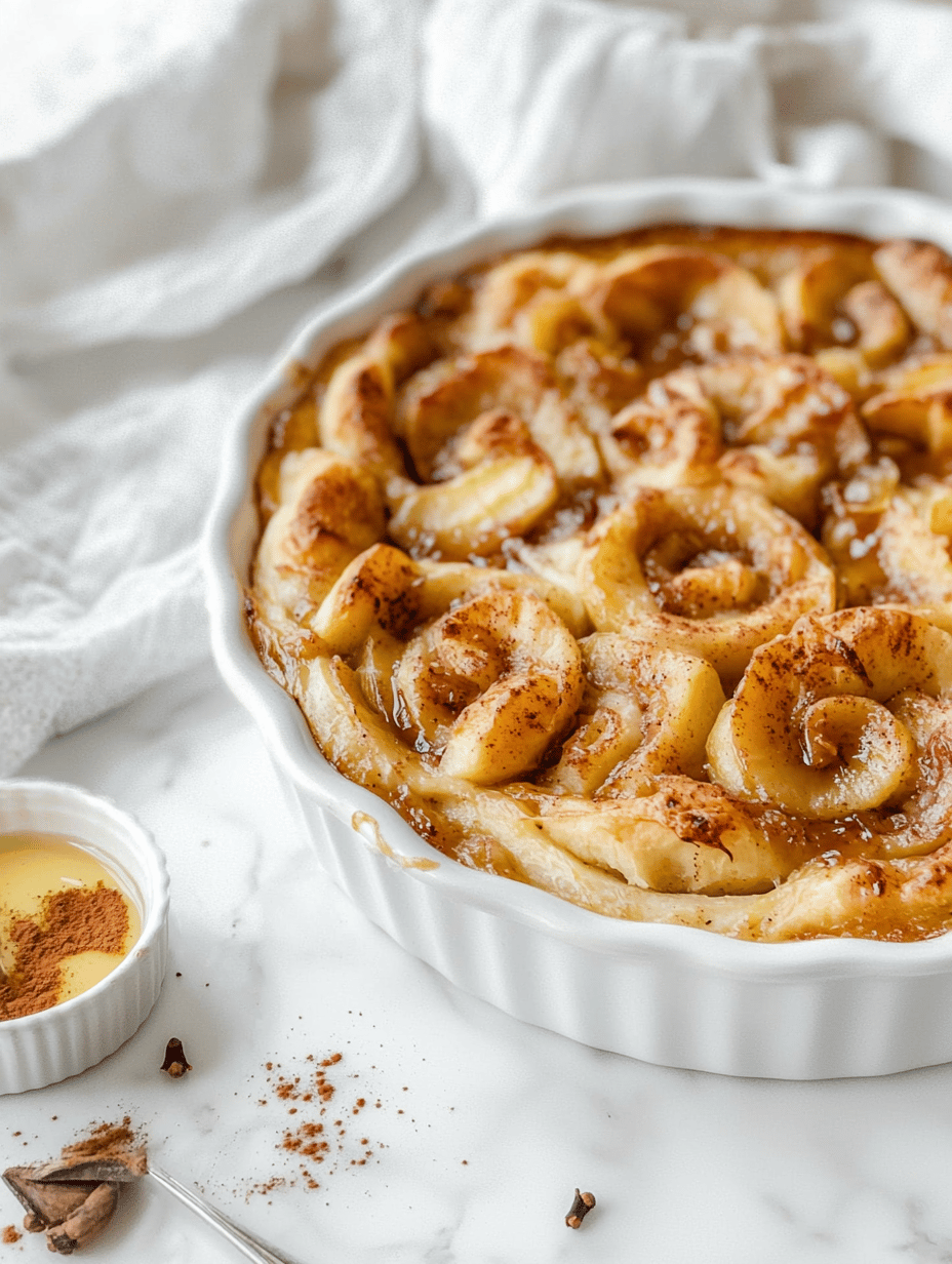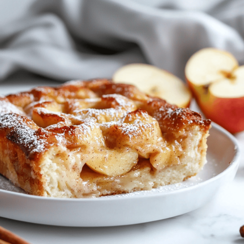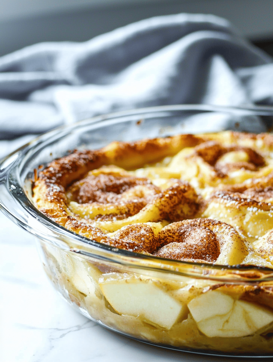 This apple cinnamon roll casserole combines the warm, spicy flavors of cinnamon rolls with the fresh sweetness of sliced apples. It is baked until golden and bubbly, featuring a soft, custard-like base topped with caramelized apple slices and a crunchy topping. The final dish has a layered, tender texture with contrasting crispness on top and juicy fruit interior.