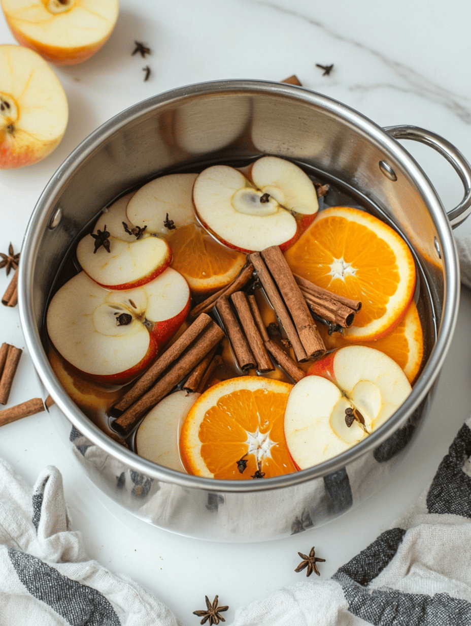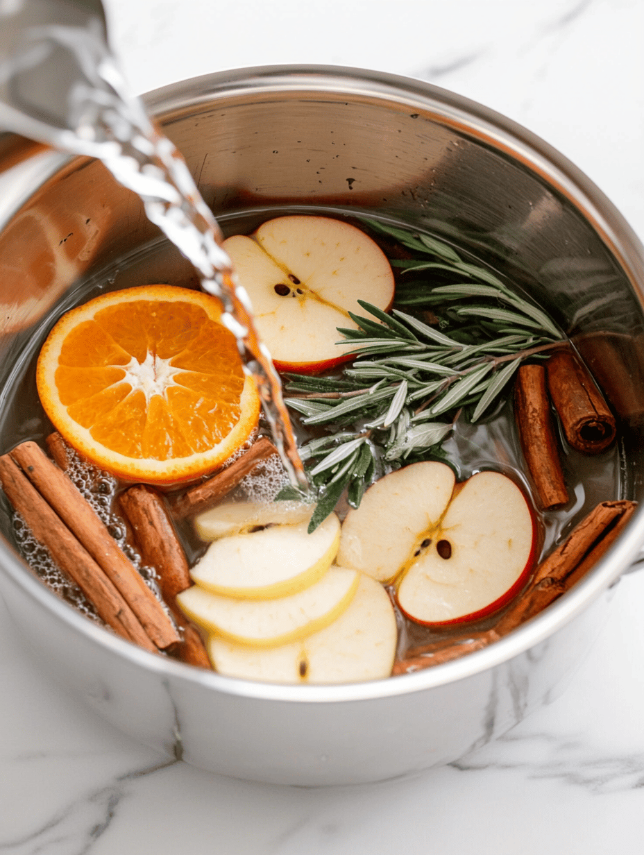 Keep an eye on the water level during simmering, adding more hot water if necessary to prevent burning or drying out. You can also add slices of orange or a splash of vanilla extract to customize the scent.