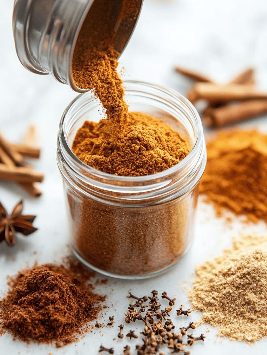 This spice blend combines warm, aromatic spices used in fall-inspired dishes, such as cinnamon, nutmeg, cloves, and allspice. It is typically added to stews, roasted vegetables, or teas to deepen flavors and evoke the cozy essence of autumn. The mixture results in a fragrant, slightly coarse spice blend with an inviting, aromatic aroma.