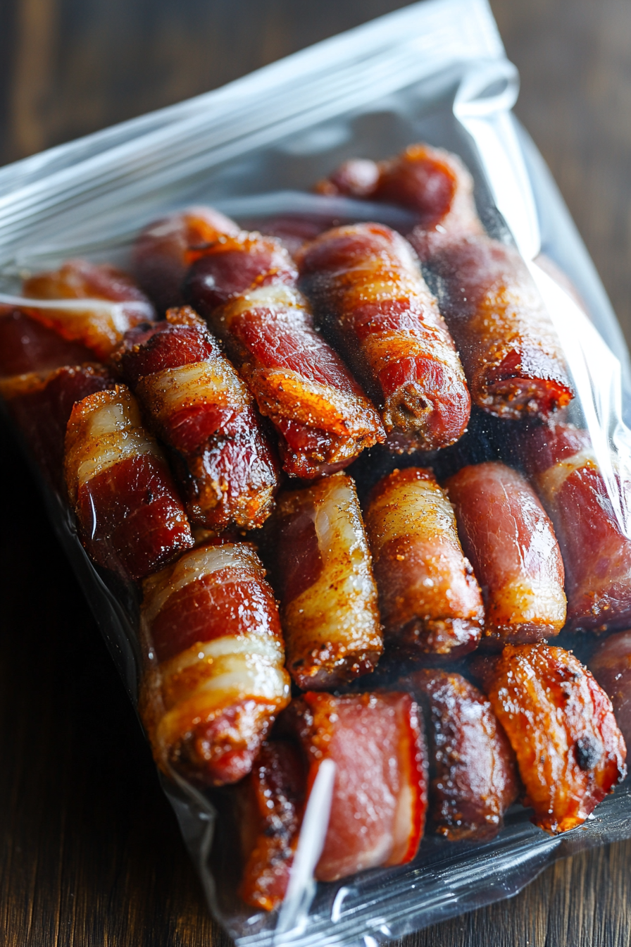 Add the bacon-wrapped smokies to the bag, seal, and shake until evenly coated.