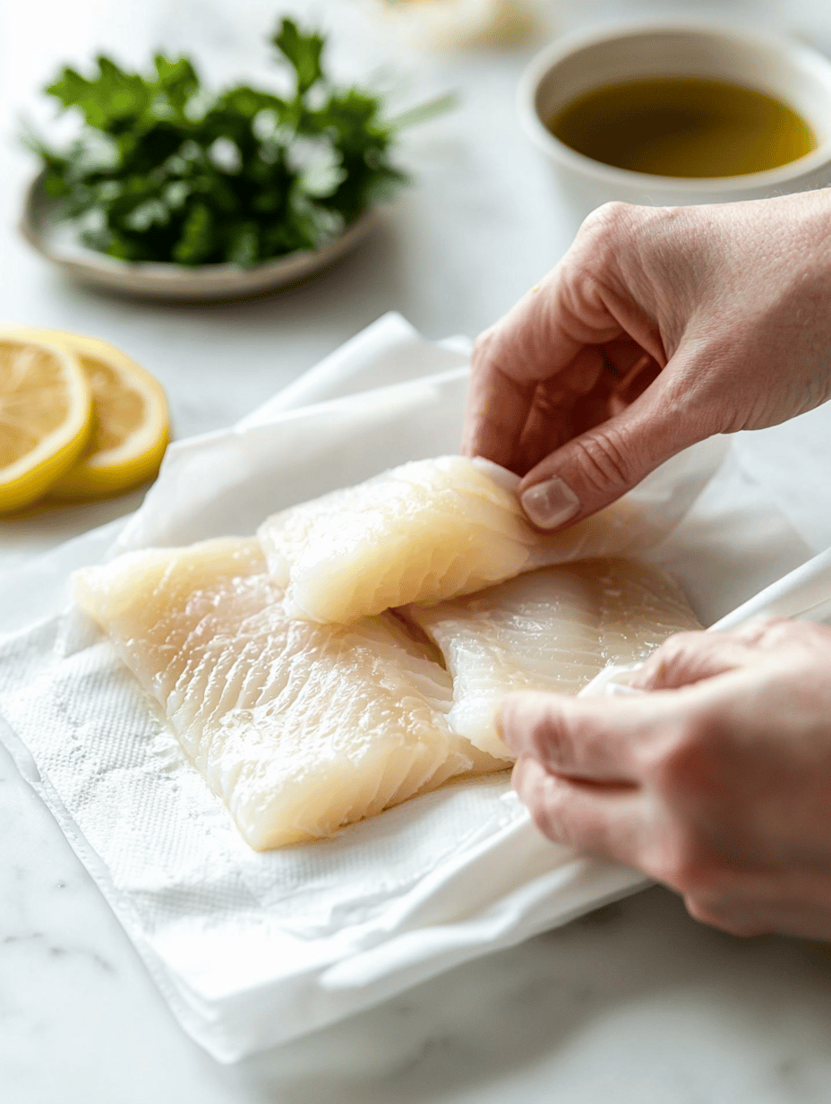 Pat the cod fillets dry with paper towels to remove excess moisture, which helps achieve a crispy crust.