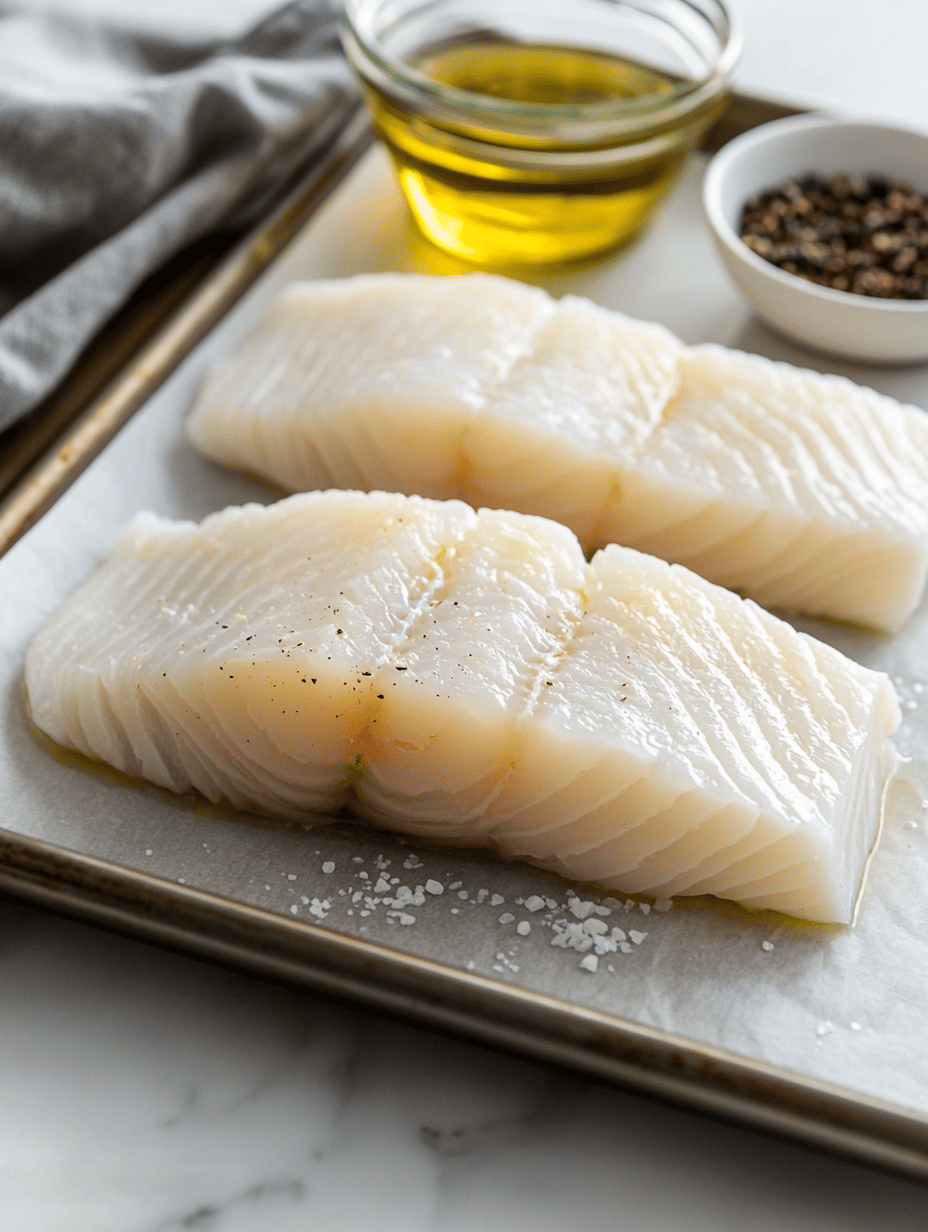 Place the fish fillets on the prepared baking sheet. Drizzle them lightly with olive oil and sprinkle with salt and pepper.
