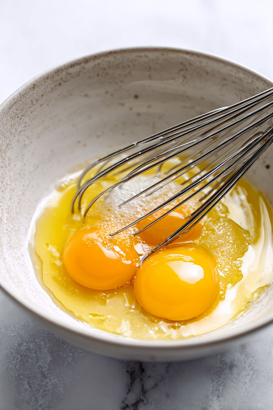 Add the egg and egg yolks, then whisk until the sugar dissolves and the mixture is smooth, about 30 seconds.