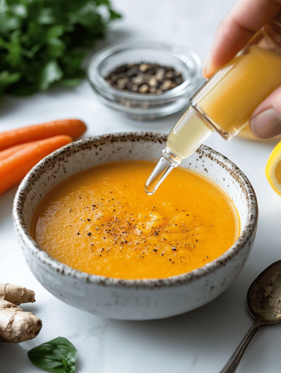 Taste the soup and season with sea salt and freshly cracked pepper. If desired, add a squeeze of lemon juice or a drizzle of coconut milk to brighten or add creaminess for a balanced flavor.