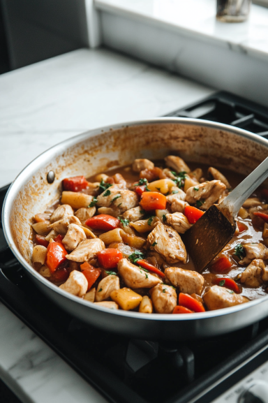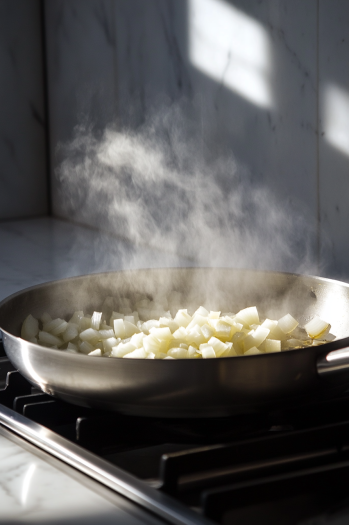 Sauté Aromatics: In a large pan, gently heat the olive oil and sauté the onion and garlic for about 4–5 minutes until softened.