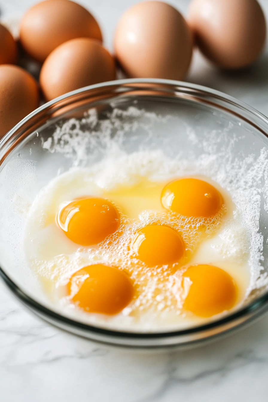 Whisk Egg Whites: In a separate bowl, beat egg whites until frothy and doubled in size.