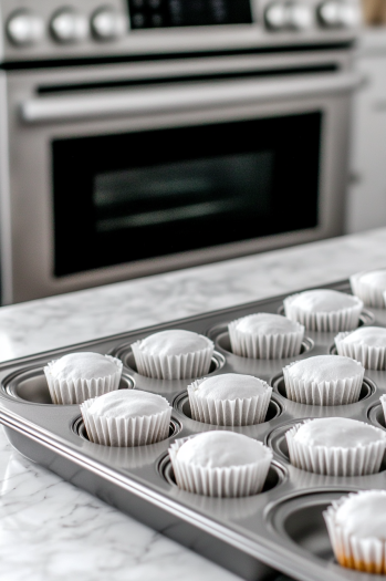 Combine: Gently fold egg whites into the cream cheese mixture. Divide evenly among muffin liners, filling nearly to the top.