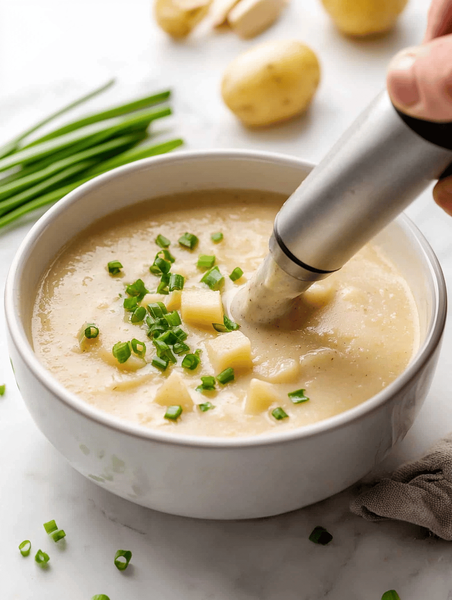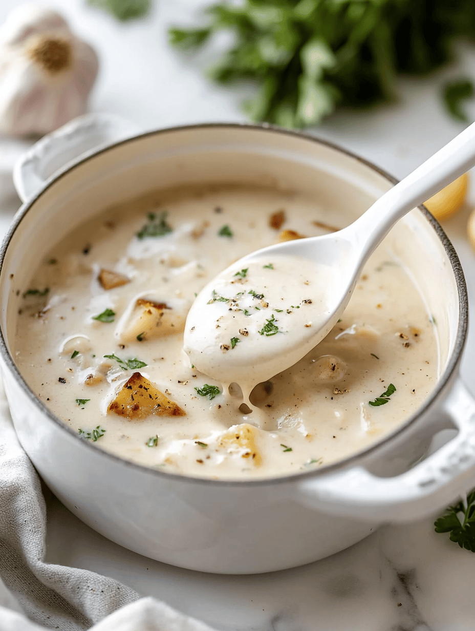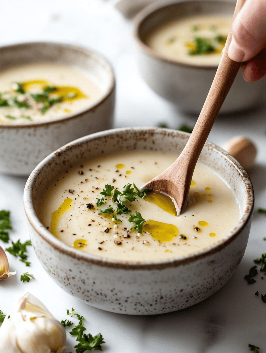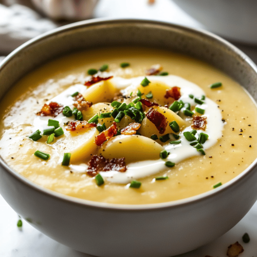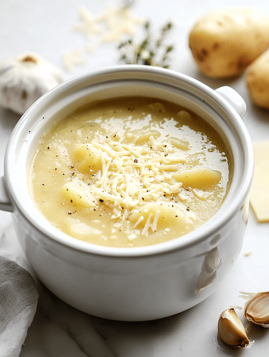 This roasted garlic potato soup is made by slow-cooking peeled potatoes and whole garlic cloves until tender, resulting in a velvety, hearty dish. The final texture is creamy with mellow garlic infusions, served as a comforting bowl filled with smooth, fragrant soup that’s perfect for cold weather.