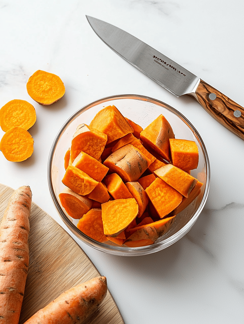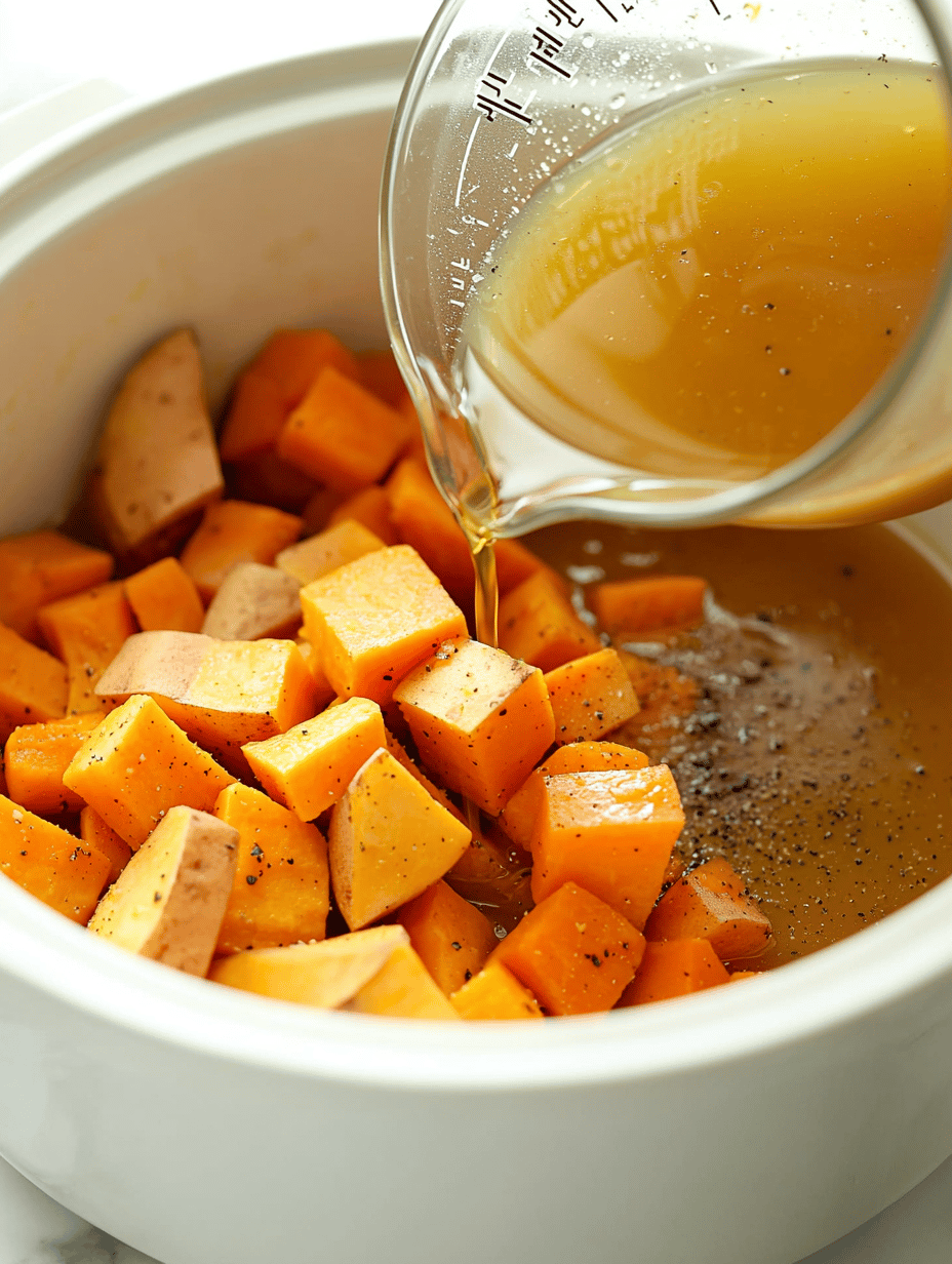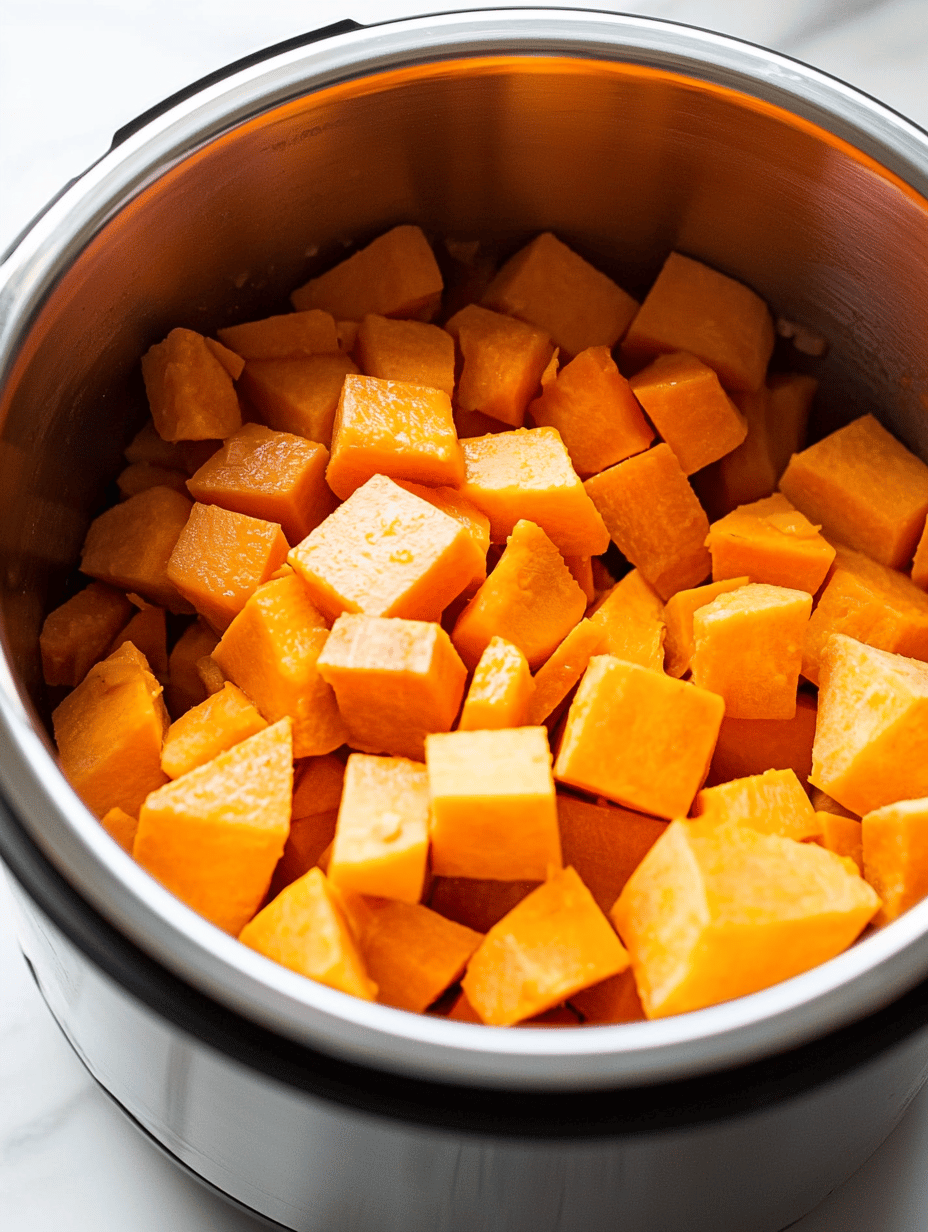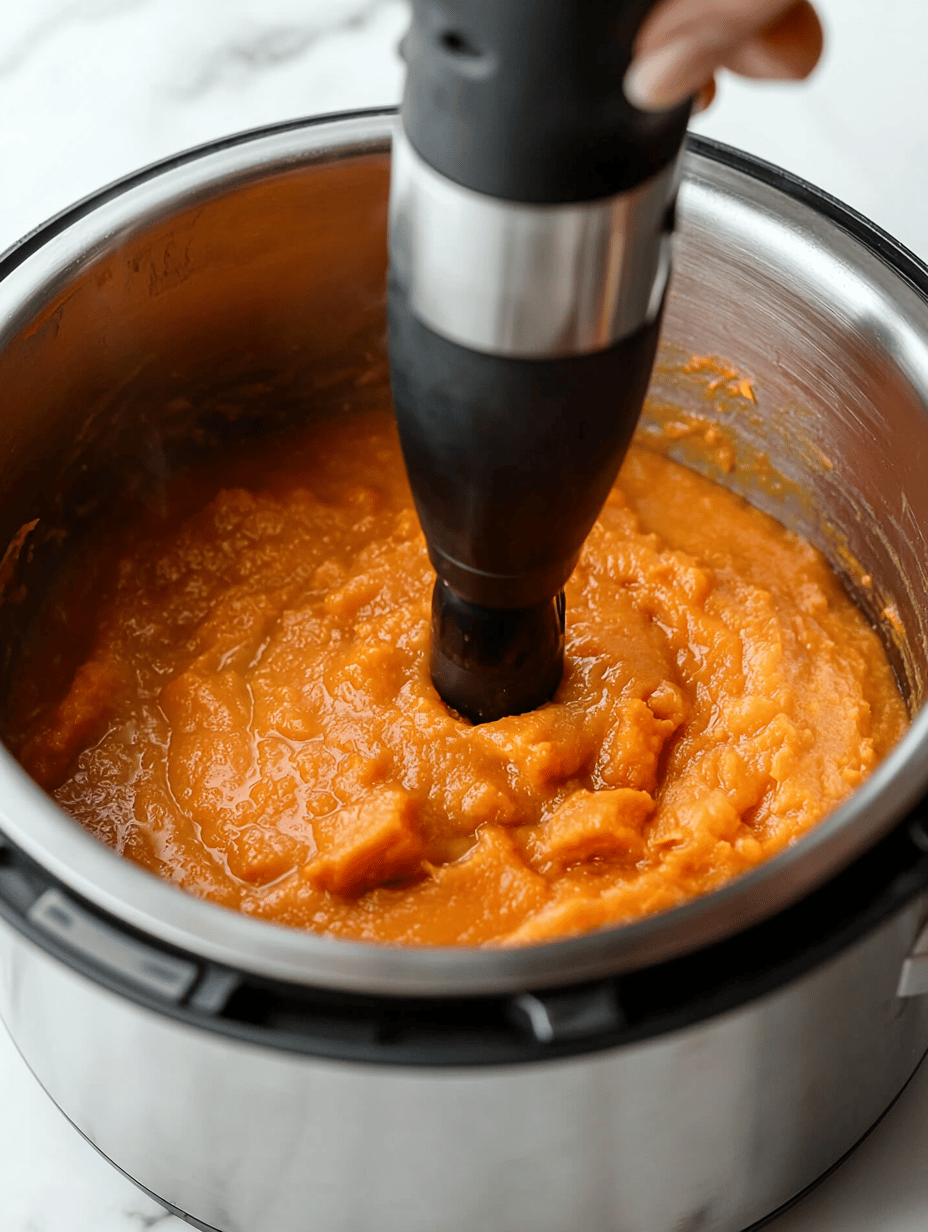 This soup is made by slow-cooking sweet potatoes and carrots until soft and fragrant, creating a velvety, comforting puree. The dish features a smooth, bright orange appearance with a naturally sweet flavor and a subtle, hearty texture.