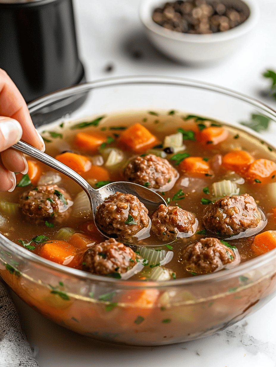 Keyword fall, hearty, Meatballs, slow cooker, soup