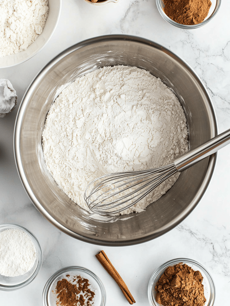 In a large mixing bowl, whisk together the gluten-free flour, cinnamon, nutmeg, clove, baking powder, and salt until evenly blended.
