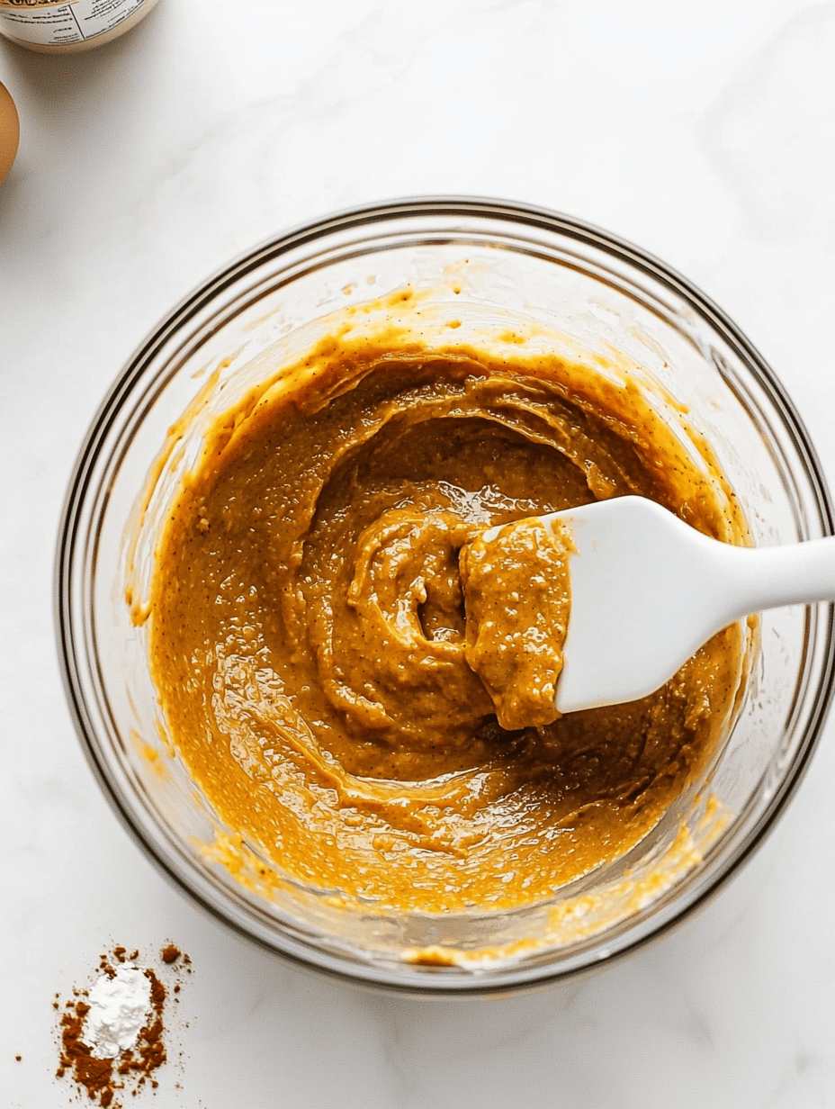 In a separate bowl, beat the eggs, then stir in the roasted pumpkin, maple syrup, milk, and melted butter until smooth.