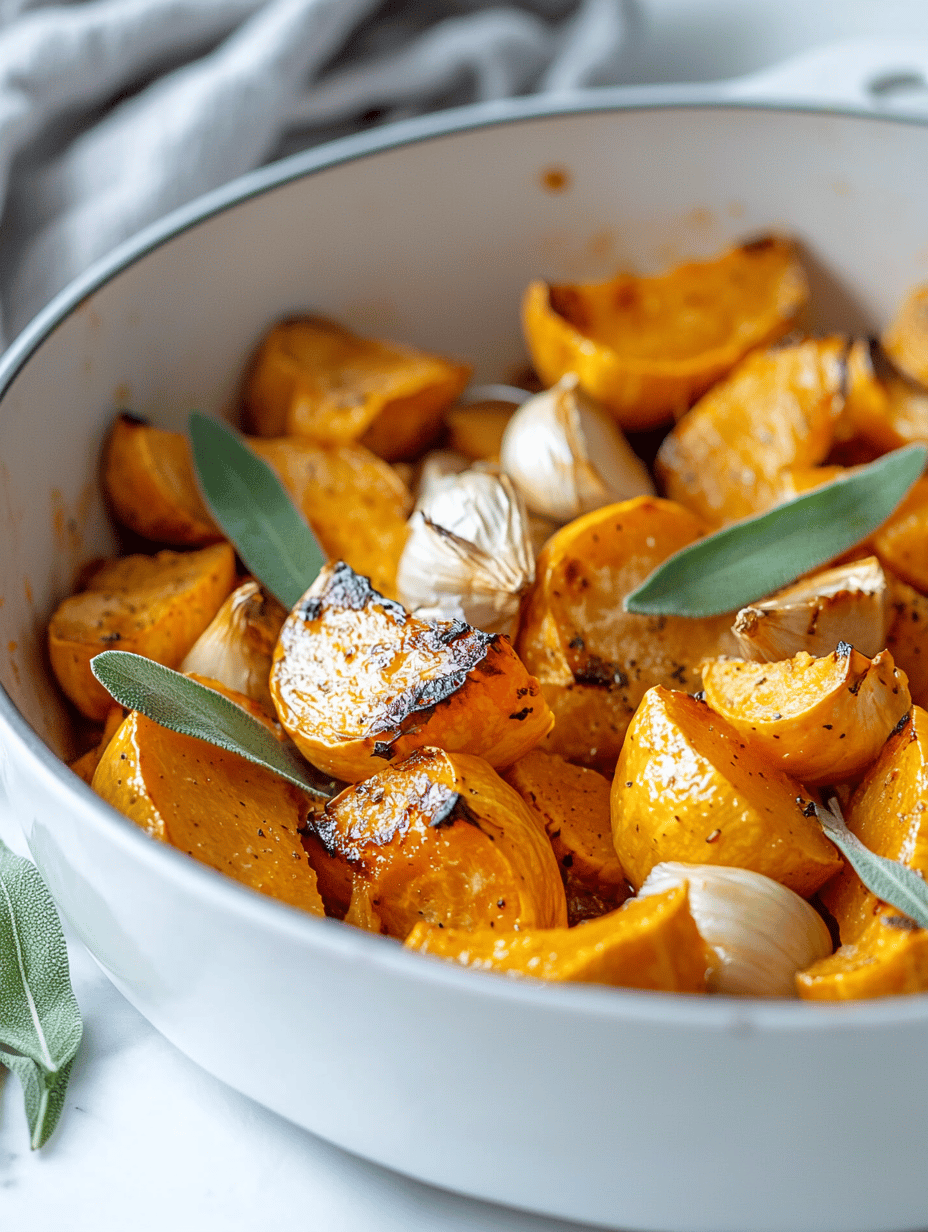 Once the squash and garlic are done roasting, carefully transfer the squash to the pot with the sage. Add the roasted garlic cloves, squeezing them out of their skins, and cook for a few minutes, stirring gently to combine the flavors.