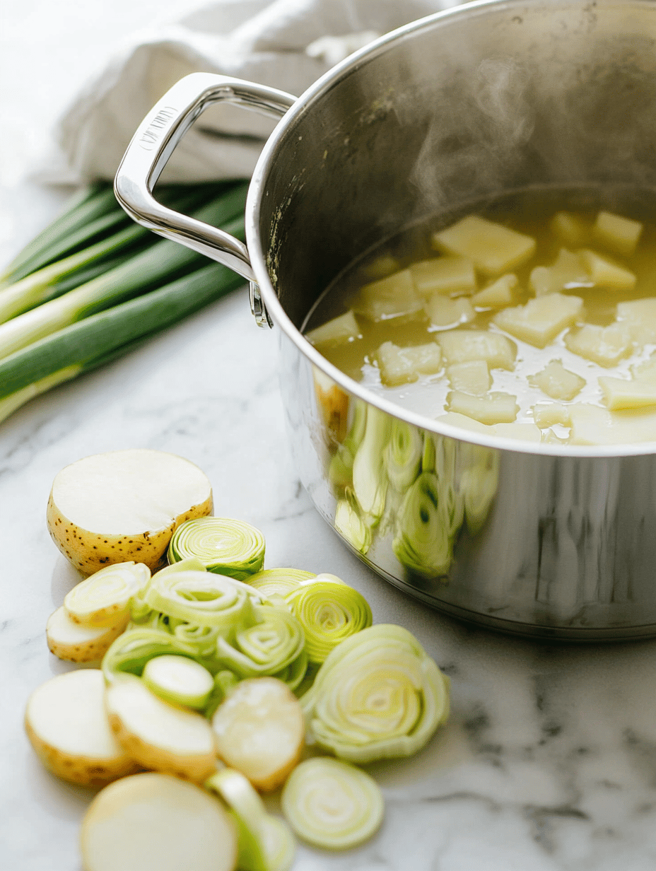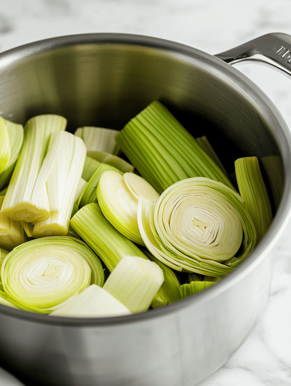 Add the sliced leeks to the pot and cook, stirring occasionally, until they soften and become translucent, about 5 minutes. The aroma will deepen as they release their sweetness.