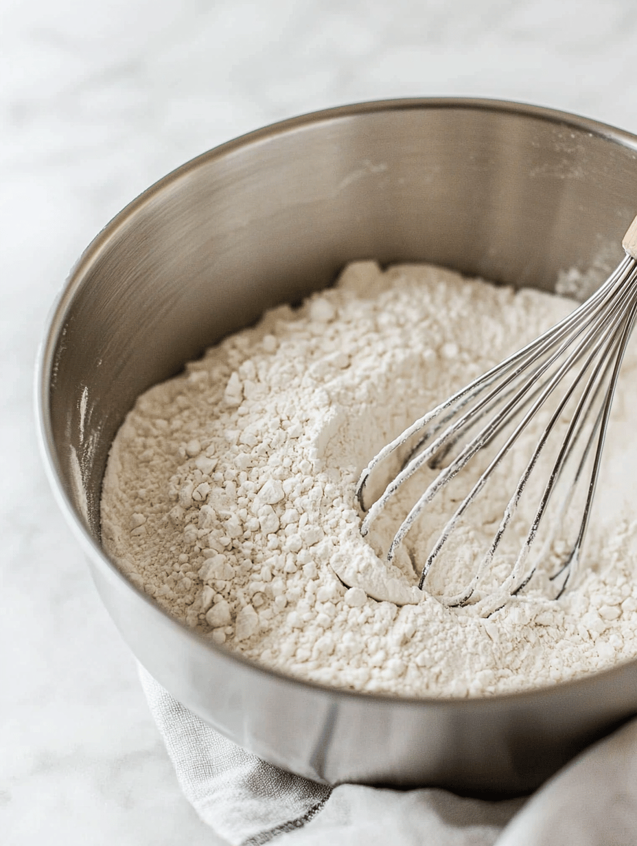 In a large mixing bowl, whisk together the flour, sugar, baking powder, salt, and poppy seeds until evenly combined. This creates a light dry mixture that will help incorporate the wet ingredients smoothly.
