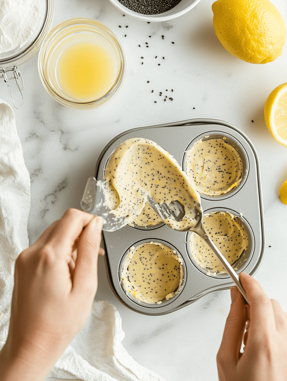Pour the wet mixture into the dry ingredients and gently fold everything together with a spatula. Avoid overmixing; some lumps are fine—this keeps the muffins tender.