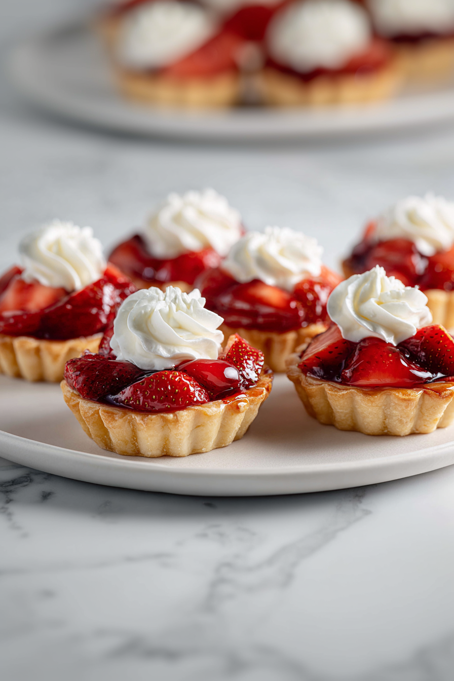 These Mini Strawberry Tarts are light, fruity, and perfect for gatherings. With buttery shells, fresh strawberries, and a glossy strawberry glaze, they look beautiful and taste even better like summer in every bite!