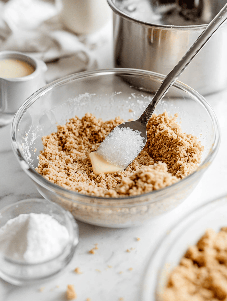 Crush graham crackers into fine crumbs using a food processor or by sealing them in a plastic bag and pounding with a rolling pin. Mix crumbs with sugar and melted butter until evenly coated and crumbly. Press the mixture firmly into the bottom of a springform pan to create an even crust; set aside.