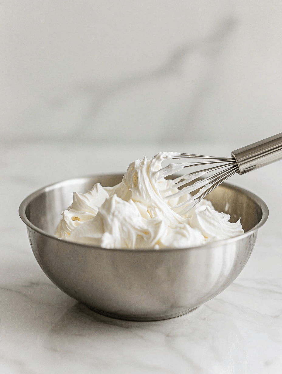 In a separate bowl, whip the chilled heavy cream until stiff peaks form, about 3-4 minutes. This adds airy richness to the filling.