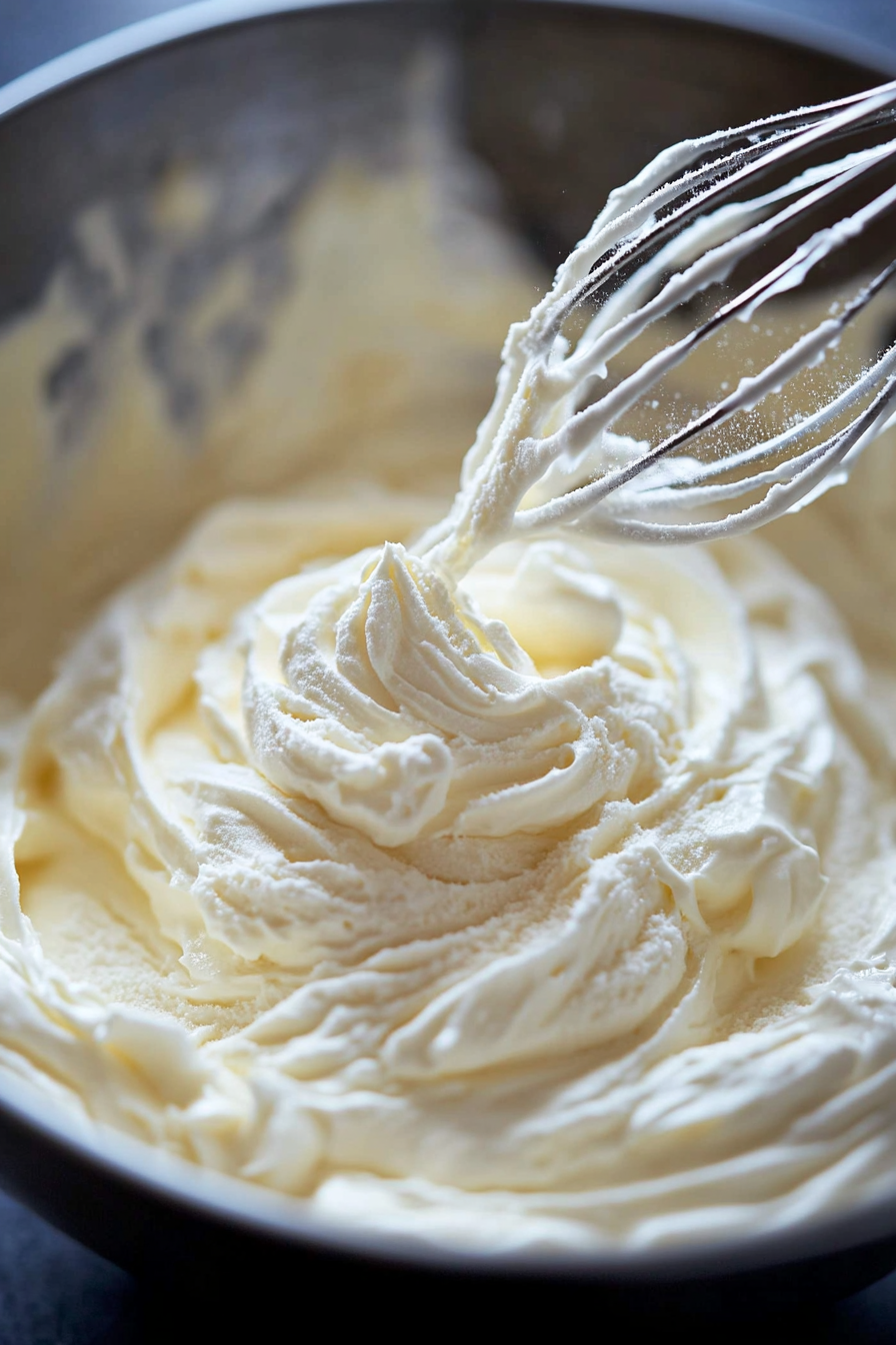 Whip 1 ¼ cups heavy cream until stiff peaks form; add powdered sugar and set aside.