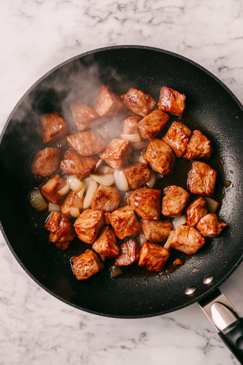 Marinate the Pork: Place the cubed pork in a bowl and pour the sauce over it. Mix well to coat all the meat. Cover the bowl with plastic wrap and let it marinate in the fridge for at least 2 hours, or overnight if you have time. This step makes the flavors pop!
