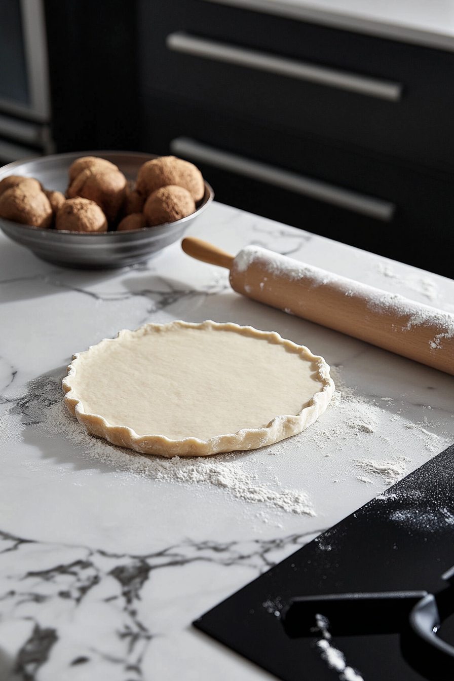 Roll out pie dough, transfer to a 9-inch pie plate, trim edges, fold into a double layer, and crimp.