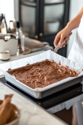 Preheat your oven to 350°F (175°C). Line an 8x8-inch baking pan with parchment paper, leaving overhang for easy removal.