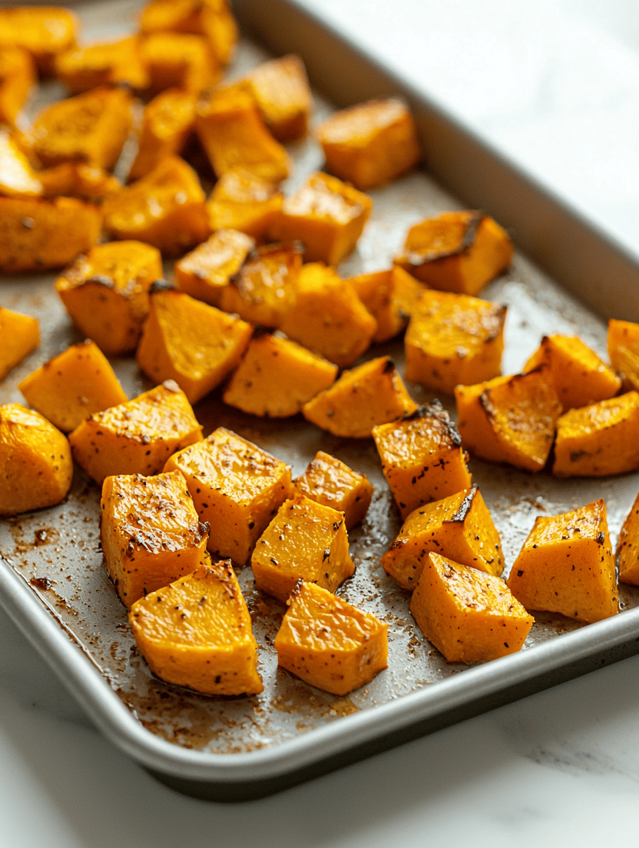 Preheat your oven to 400°F (200°C). Spread the pumpkin chunks on a baking sheet and toss with 1 tablespoon of olive oil. Roast for about 25 minutes until tender and slightly caramelized, filling the kitchen with a warm, sweet aroma.