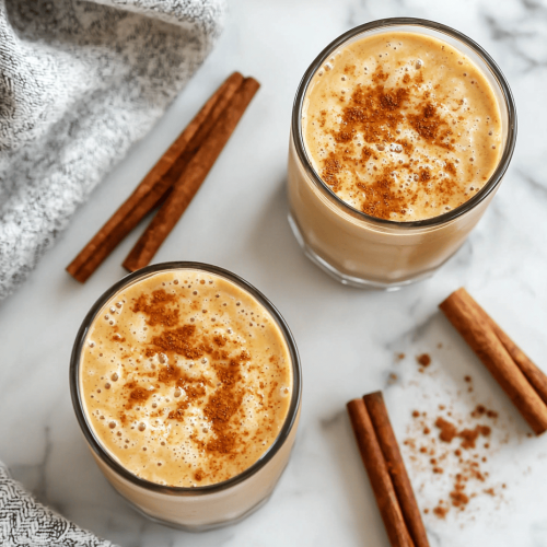 Pour the smoothie into glasses, and if desired, sprinkle a little extra cinnamon on top for added aroma and visual appeal. Serve immediately for a chilled, invigorating fall treat.