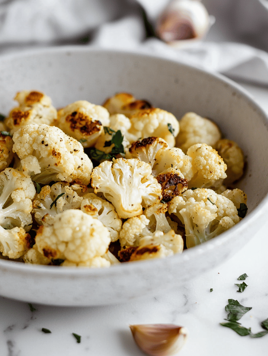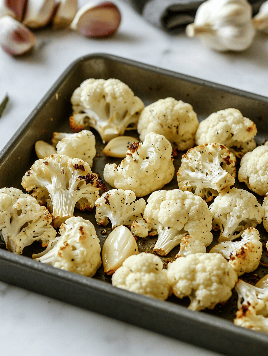 Roast in the oven for about 25-30 minutes, or until the cauliflower is golden brown and tender, and the garlic is soft and fragrant.