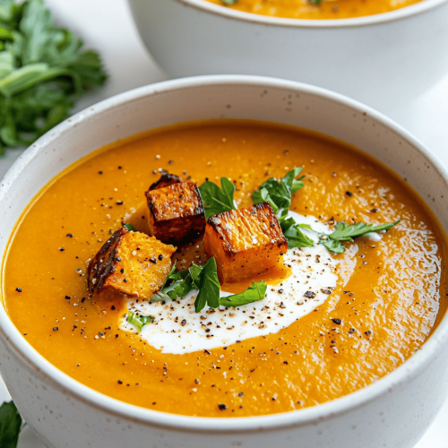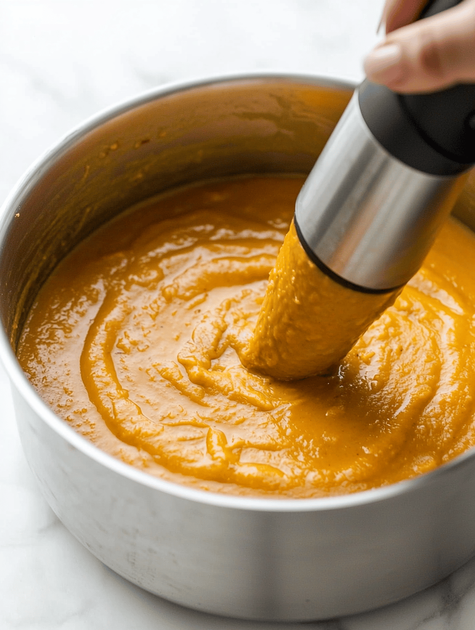 Ensure to peel the pumpkin after roasting if the skin is tough or stringy. Adjust spices according to your preference for warmth and flavor. Leftover soup can be stored refrigerated for up to 3 days and reheated gently.