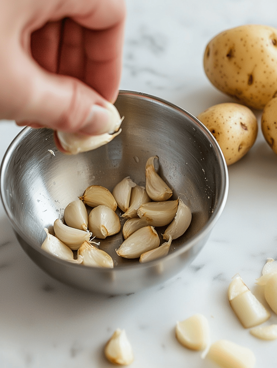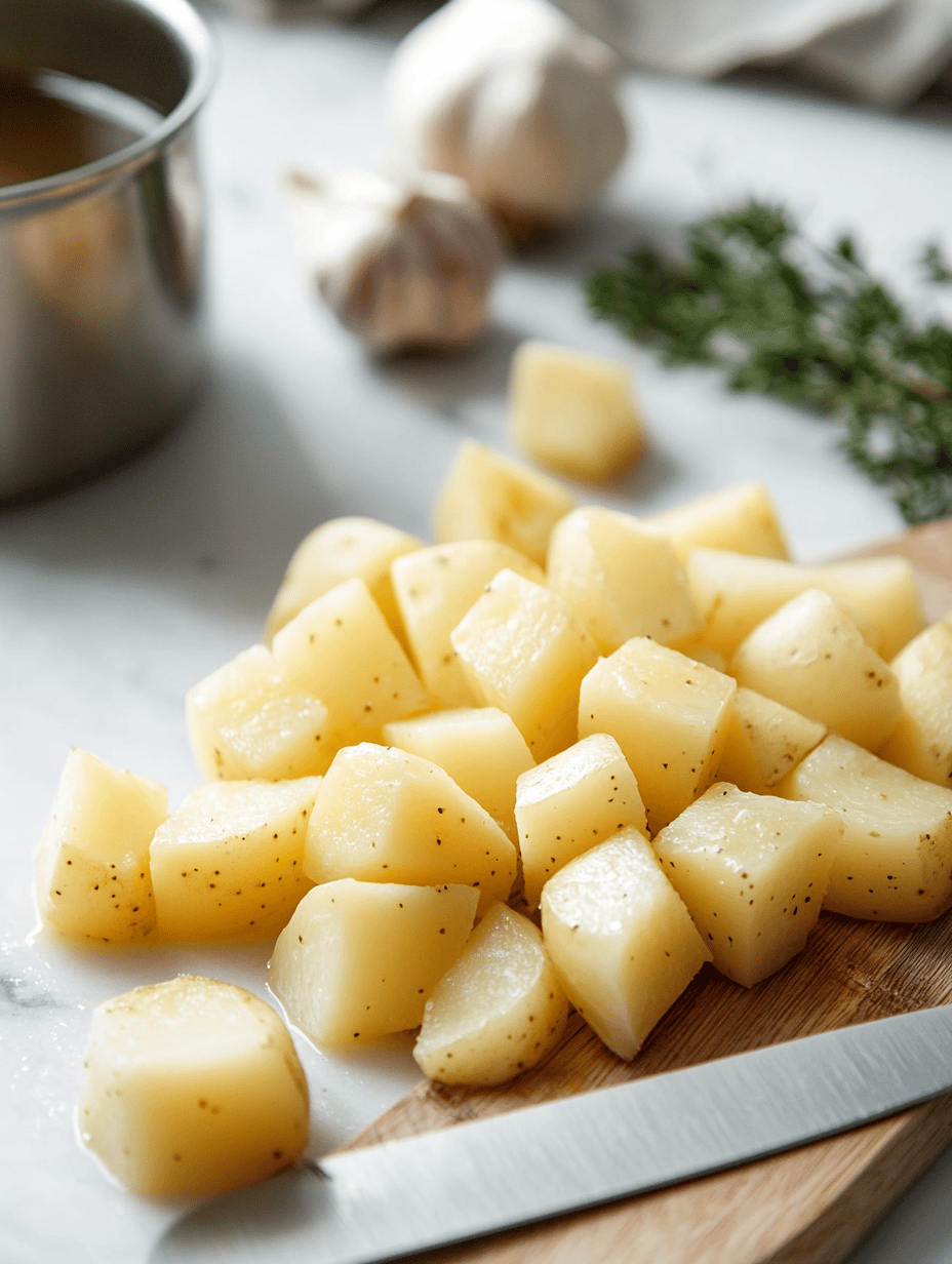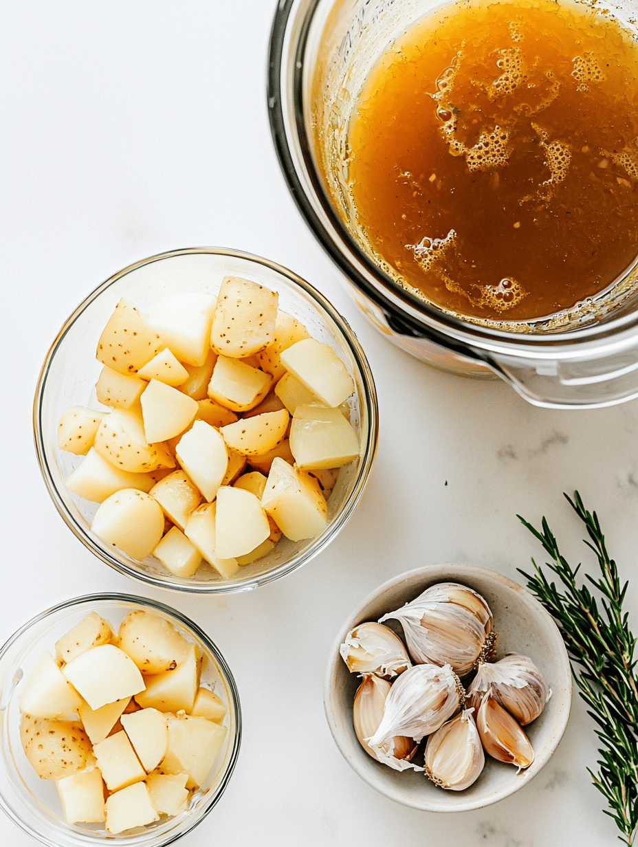 This soup features whole potatoes and garlic roasted slowly to develop rich, caramelized flavors. Prepared in a slow cooker, the ingredients transform into a smooth, velvety puree with a comforting, thick texture and deep roasted garlic aroma. The final dish is creamy and visually inviting, perfect for cozy gatherings.
