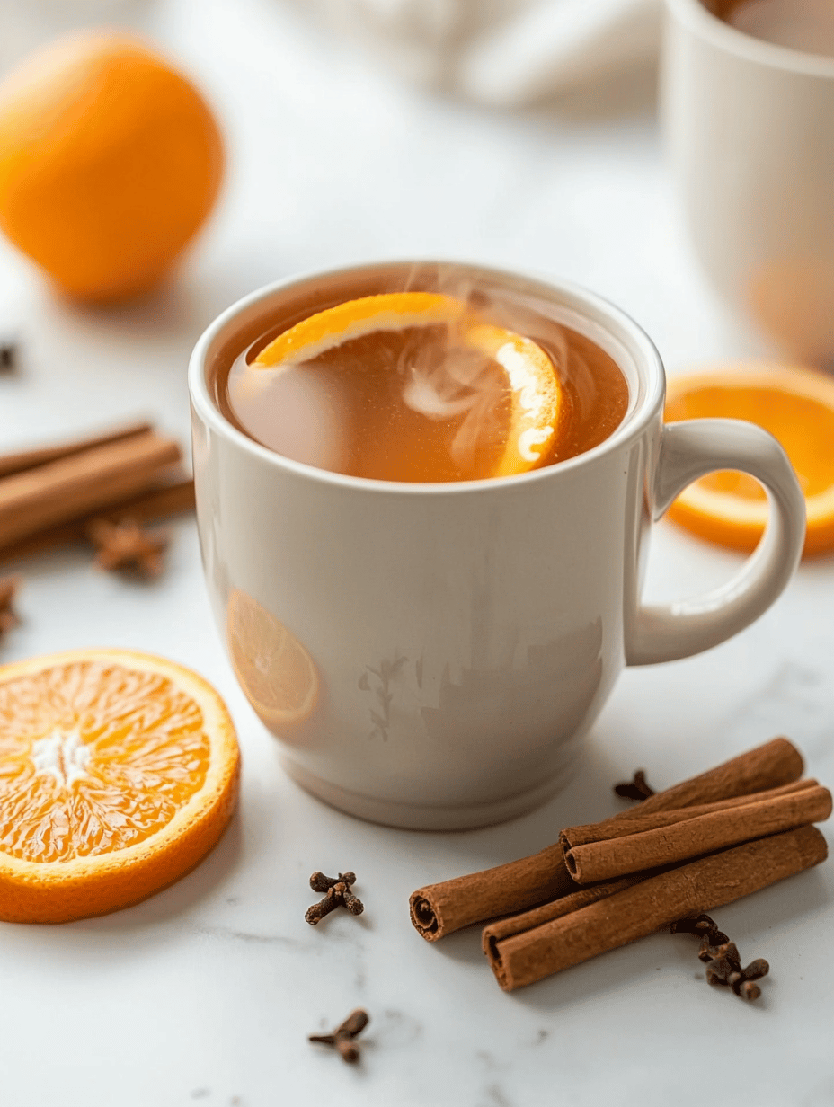 Serve immediately, enjoying the steaming mug with its rich aroma and warm, spiced flavor.