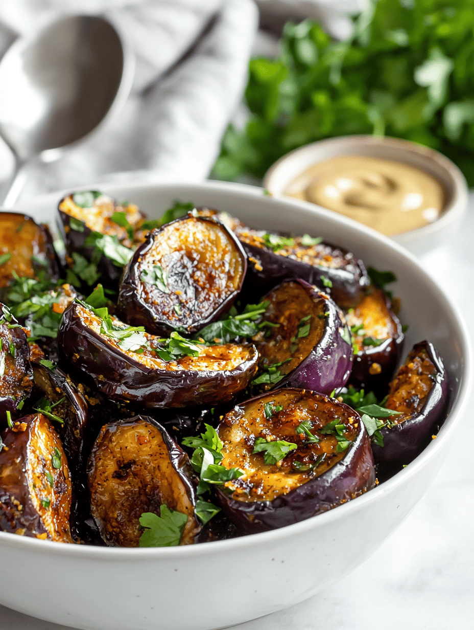 For extra depth, sprinkle a splash of pomegranate molasses or squeeze fresh lemon over the roasted eggplant before serving. Adjust spice levels by tasting the seasoning mix before roasting and adding more if needed.