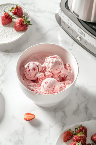 Serve and enjoy your creamy homemade strawberry ice cream!