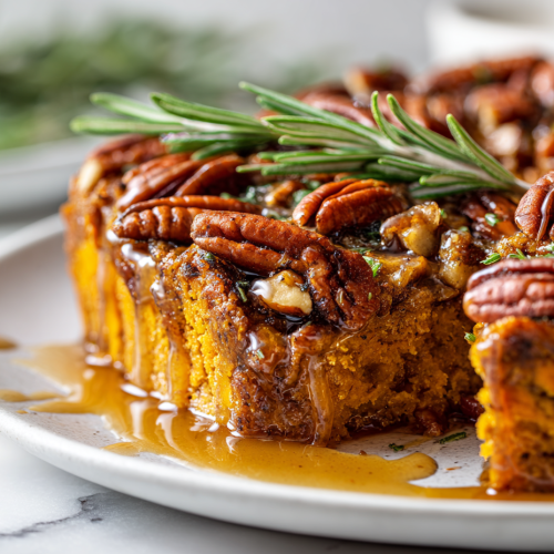 Serve warm, enjoying the contrast of soft sweet potatoes and crunchy pecan topping with a warm cinnamon aroma.