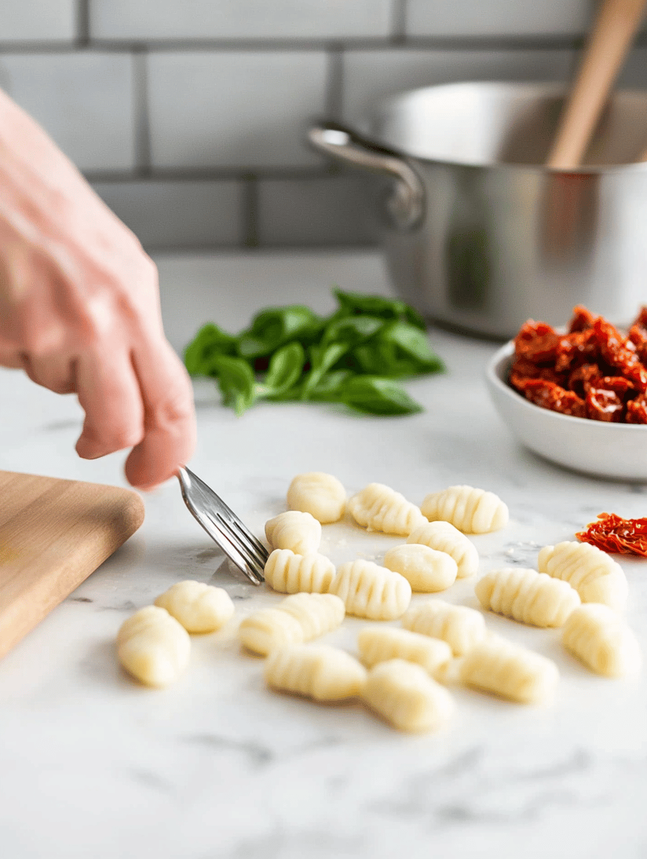 Cut each rope into 1-inch pieces, then gently roll each piece over a fork or a gnocchi board to create ridges, if desired.