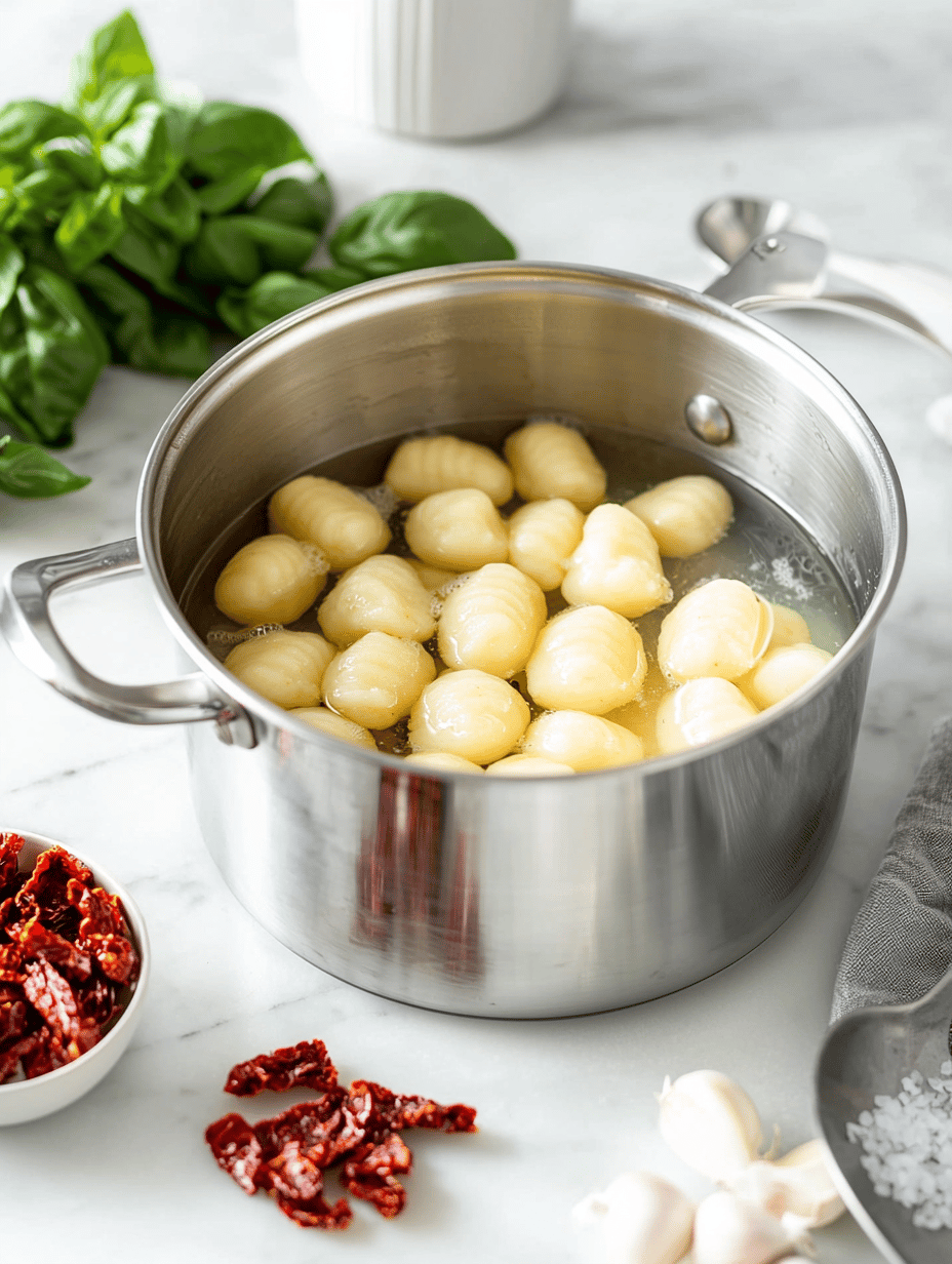 Bring a large pot of salted water to a boil. Carefully add the gnocchi and cook until they float to the surface, about 2-3 minutes. Use a slotted spoon to remove them.