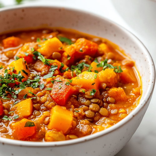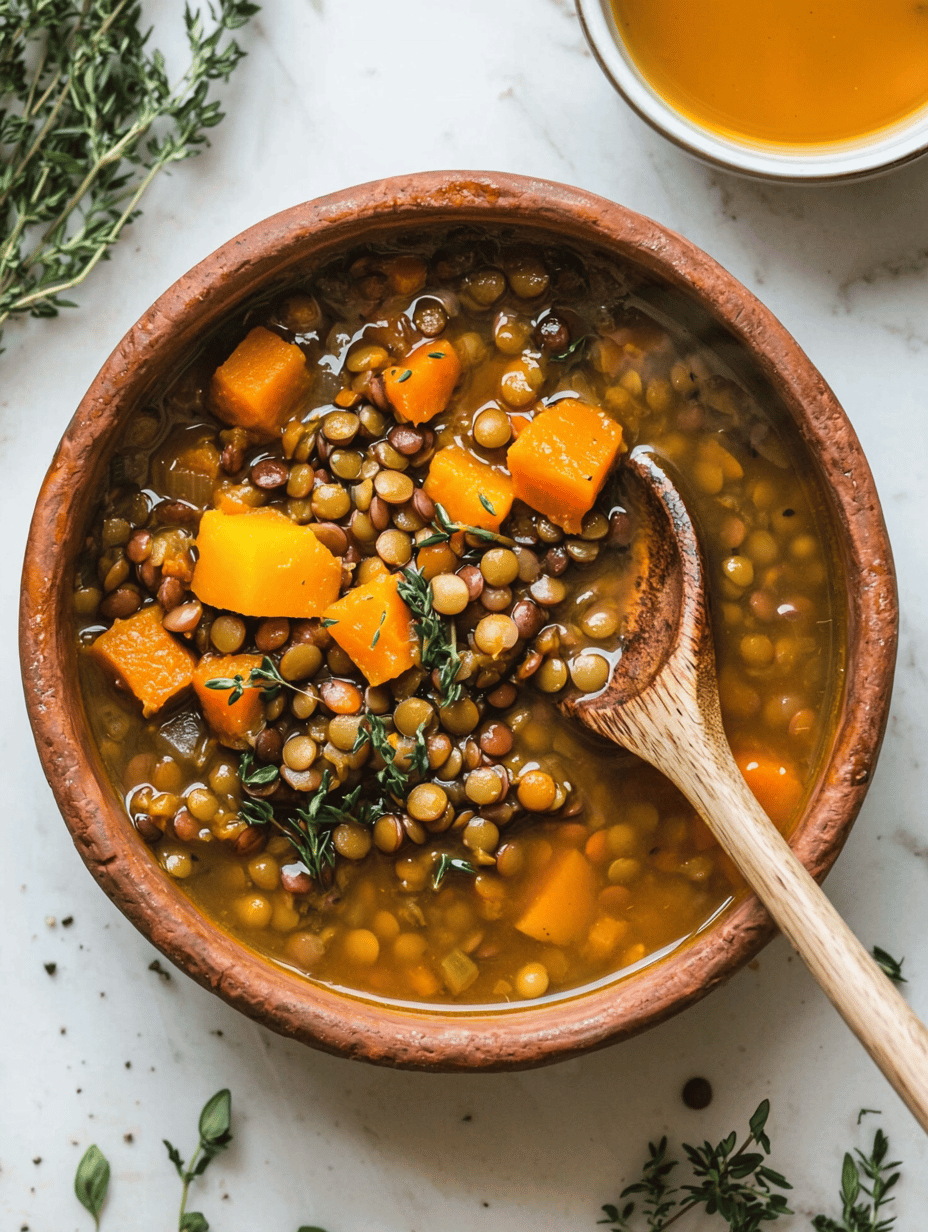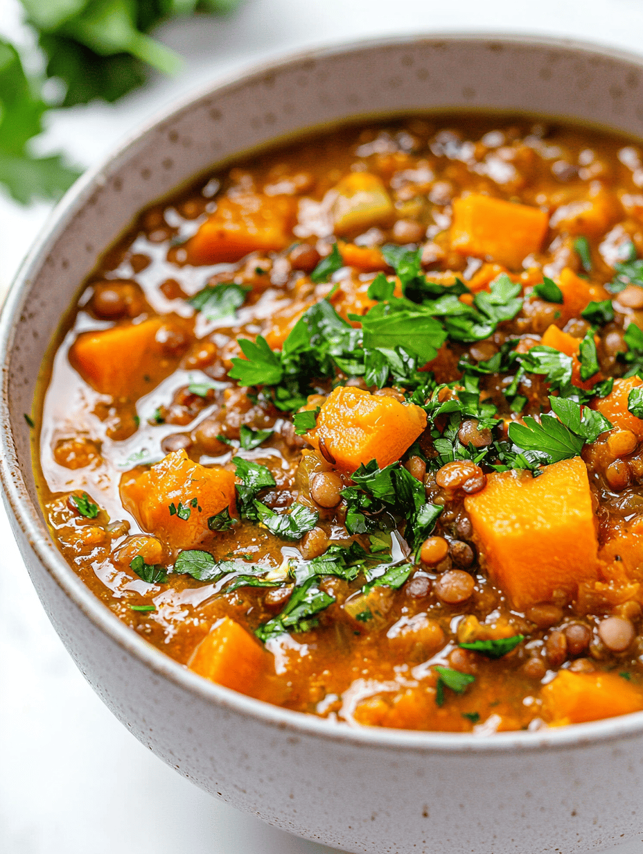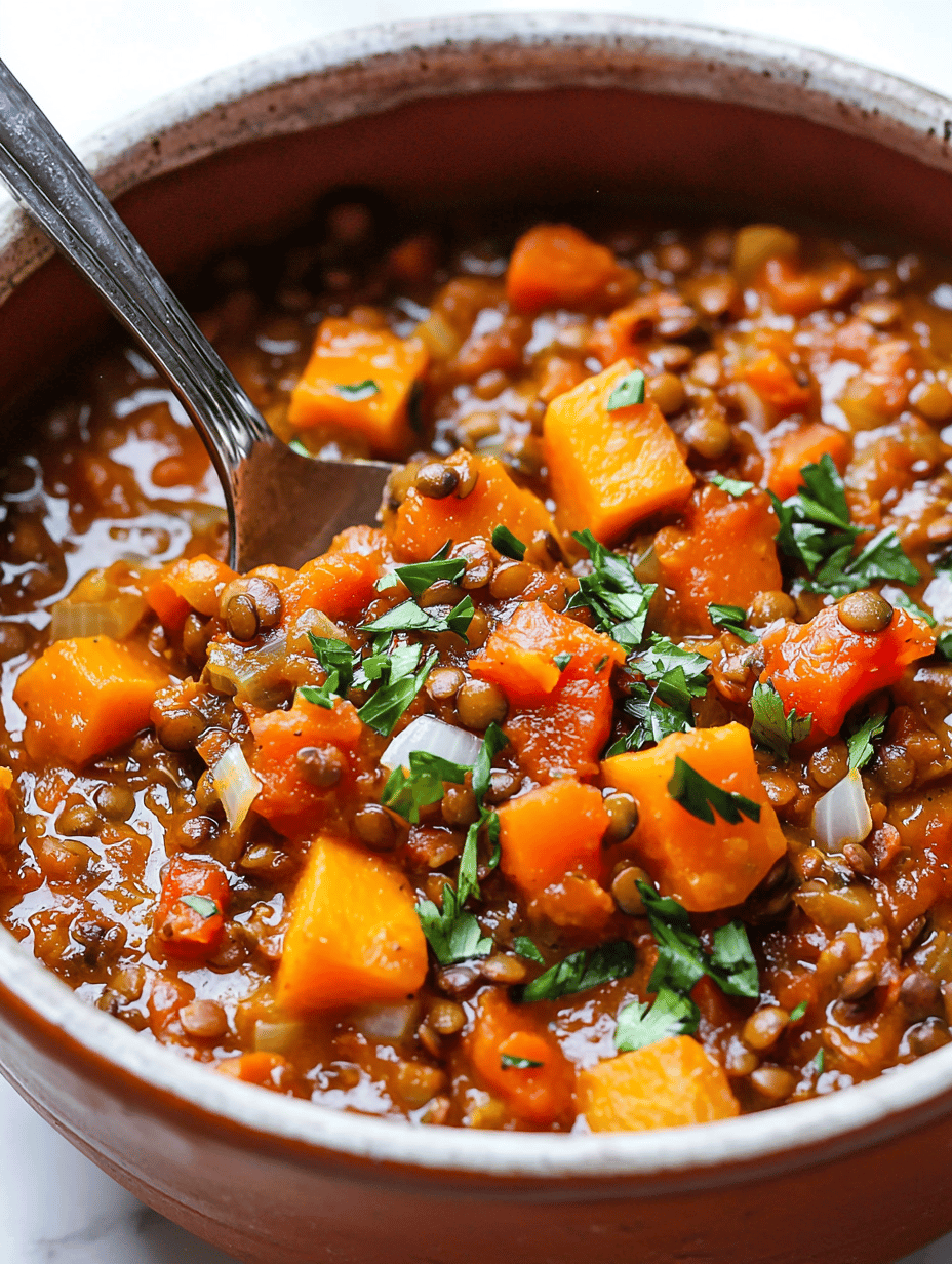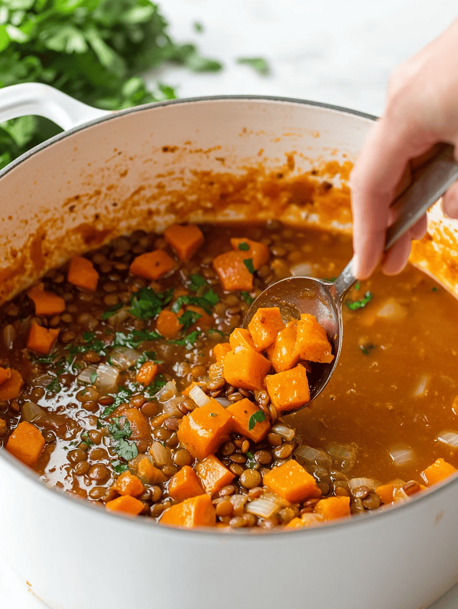 Adjust the stew’s consistency by adding more broth if it’s too thick, or simmer longer if you prefer it thicker. The stew is ready when the lentils are tender, and the flavors are well combined with a warm, earthy aroma.