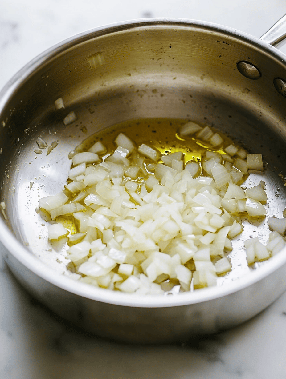 While the pumpkin roasts, heat a splash of olive oil in a large pot over medium heat. Add the chopped onion and cook, stirring often, until it turns translucent and fragrant, about 5 minutes.